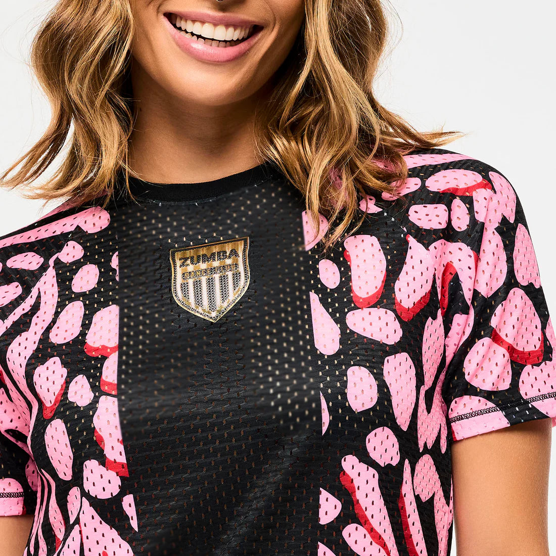 - Estampado exclusivo y llamativo de Zumba en toda la prenda